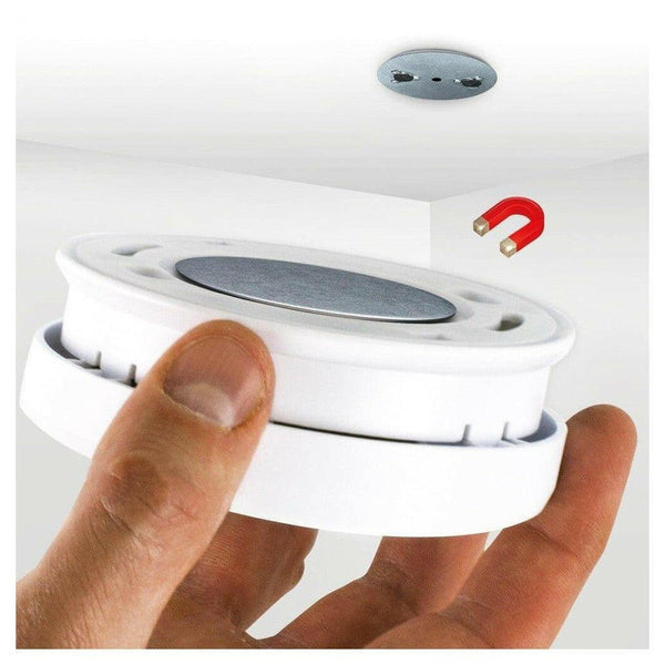 - Klik de alarmmelder met de magneetschijf tegen de metalen schijf aan het plafond.