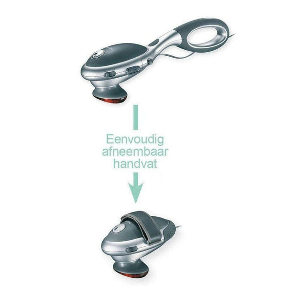 Je kunt bij de Beurer MG70 het langere handvat loskoppelen, zodat je 'm ook als handmassage-apparaat kunt gebruiken. Hiermee masseer je jezelf of een ander nog makkelijker. Dankzij de klittenbandsluiting glipt het apparaat niet uit de hand. Bovendien maakt het afneembare handvat de MG70 compacter, wat handig is als je het massage-apparaat wil meenemen.