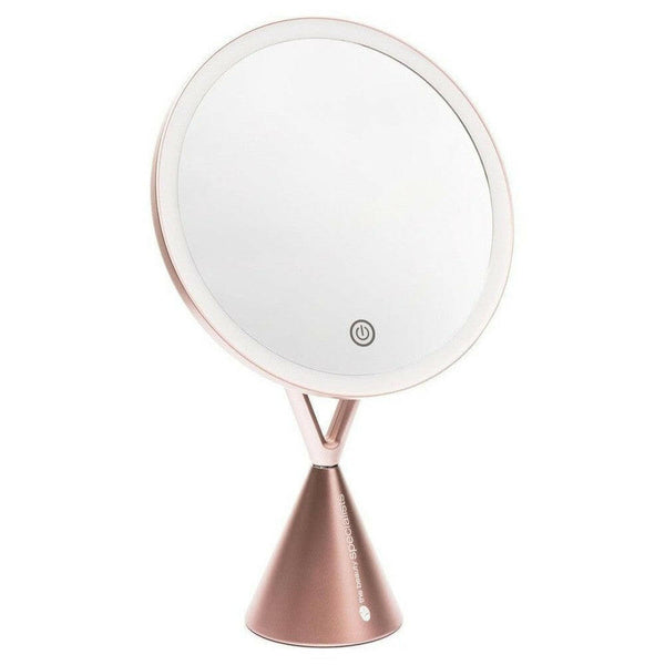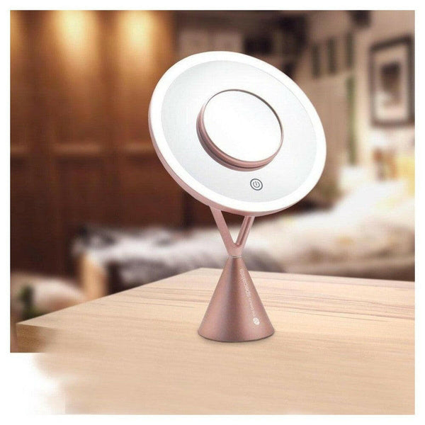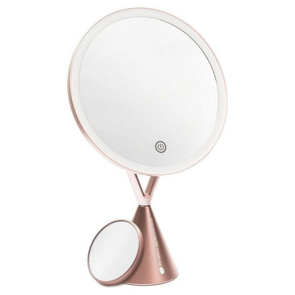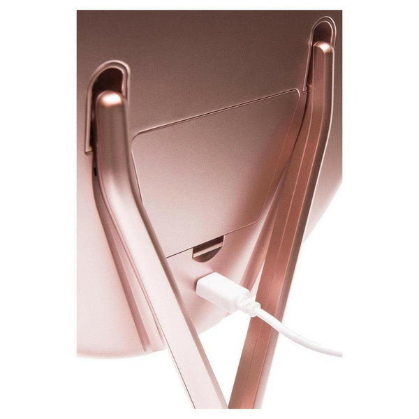 De Rio MMCO make-up-spiegel met LED-ringverlichting is ideaal om te gebruiken bij het aanbrengen van make-up, de dagelijkse huidverzorging en het plaatsen van contactlenzen. Bij de verlichte cosmeticaspiegel zit een afneembare mini-spiegel met 5x vergroting, die je op een spiegel kunt vastmaken met magnestische bevestiging. De spiegel heeft een luxe uitstraling dankzij de rosé gouden kleur. Je kan 'm overal gebruiken met een USB kabel of op batterijen (4 AAA-batterijen, niet meegeleverd).