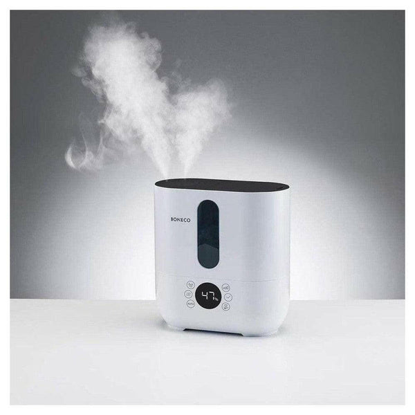De Boneco U350 maakt gebruik van een effectieve en hoogwaardige ultrasone bevochtigingstechniek, die het water door middel van trillingen omzet tot microfijne nevel. Met behulp van de ingebouwde digitale hygrostaat meet het apparaat continu het luchtvochtigheidsniveau, zodat de luchtbevochtiging optimaal is. Het meegeleverde Aqua Pro waterfilter zuivert het water en de Ionic Silver Stick zet de antibacteriële effecten van zilver in voor de beste waterkwaliteit. Het water kan makkelijk van bovenaf bijgevuld worden en het waterreservoir heeft een inhoud van 5 liter.