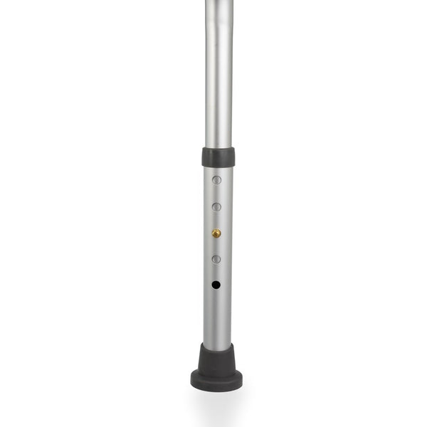 Deze douchestoel is erg makkelijk op de gewenste hoogte in te stellen. Om de hoogte van de douche stoel aan te passen, kun je de metalen pin in de poot indrukken. vervolgens schuif je de poot op de juiste hoogte van de poot en vergrendel de positie van de buizen ten opzichte van elkaar door de metalen pin door de opening te laten klikken. De poten zijn verstelbaar in stapjes van 2,5 cm.