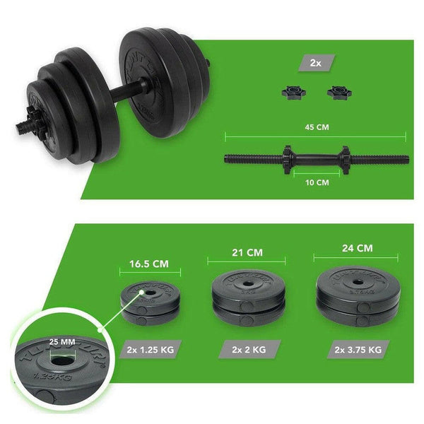 Ga voor een effectieve training vanuit huis met de Tunturi Vinyl Dumbbell Set! Met deze mooie halterset kun je vrijwel elke spier in je lichaam versterken met fitness-oefeningen zoals squats, crunches, curls en extensions. Bij de set zitten verschillende halterschijven, zodat je het gewicht in kleine stappen kunt opbouwen. Dankzij de meegeleverde schroefsluiters blijven de gewichten stevig zitten.