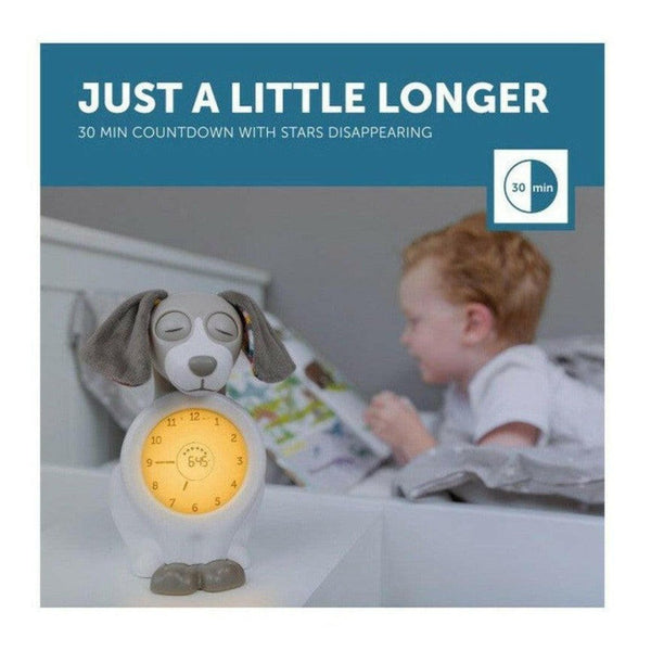 De Zazu Davy de Hond slaaptrainer laat je kind zien wanneer het tijd is om in bed te blijven en wanneer het tijd is om op te staan.