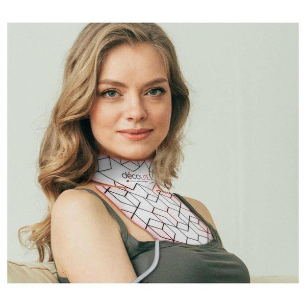 De Rio Decolite is een hypoallergeen LED-masker dat gebruik maakt van rood en infrarood licht om de huid van je nek en decolleté in 10 minuten per dag te verbeteren en verjongen.