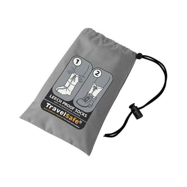 De TravelSafe anti-bloedzuiger en anti-teken sokken zijn gemaakt van polyester en polycotton. Je doet deze sokken in je schoenen en trekt ze over je broekspijpen heen. Bloedzuigers en teken kunnen dan niet bij je enkels en benen komen, omdat ze niet door de sokken heen kunnen bijten. Zo voorkom je jeuk, zwellingen, ontstekingen en mogelijke ziektes die bloedzuigers en teken met zich meedragen.
