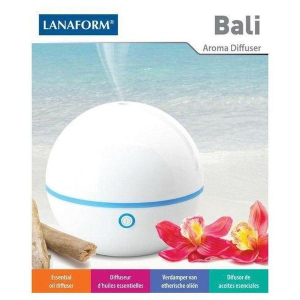 De Lanaform Bali aroma diffuser zorgt voor ontspanning door een lichte geurnevel en zachte blauwe gloed te verspreiden.