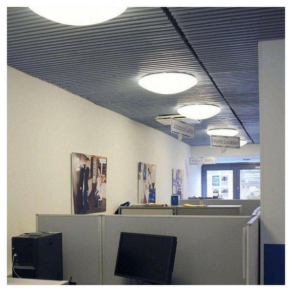 In deze plafondlamp zijn visuele ergonomie en gebalanceerde en efficiënte verlichting uitstekend met elkaar gecombineerd. Dankzij de vlakke opalen koepel is de oppervlaktehelderheid van de armatuur laag en is het licht niet verblindend, dus prettig voor de ogen. De Innolux Jasmina is een energiezuinige lamp die makkelijk en snel te monteren is aan het plafond. De lichtbronnen worden bij de armatuur geleverd.