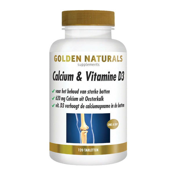 Golden Naturals Calcium & Vitamine D3 - 120 tabletten verpakking - - GOL30218 - Shopvoorgezondheid