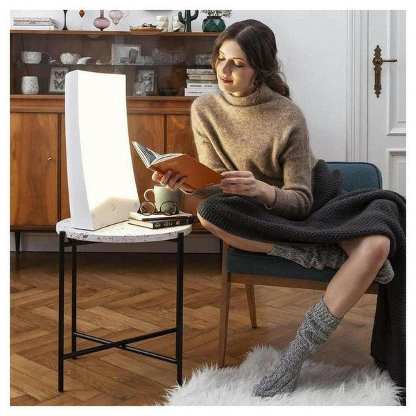 Deze grote en mooi vormgegeven daglichtlamp geeft verlichting bij klachten van een winterdepressie, zoals vermoeidheid en een sombere stemming.