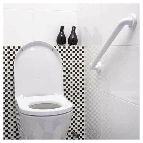 Met de SecuCare wandbeugel Basic maak je je huis direct een stuk veiliger! Deze stevige wandgreep is gemaakt van kunststof (ABS). De geribbelde greep zorgt voor nog meer grip in de badkamer en op het toilet, waardoor de kans op vallen kleiner is. Wandbeugel Basic is eenvoudig te monteren en te onderhouden en kan een gewicht dragen tot 110 kg. Je kan kiezen uit 3 lengtes: 300 mm, 450 mm en 600 mm.