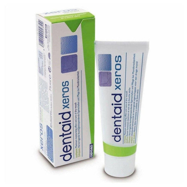 Dentaid Xeros tandpasta reinigt, bevochtigt en verzorgt je mond en gebit. Deze speciale tandpasta van Dentaid helpt om irritaties tegen te gaan en de zachte weefsels in de mond te verzorgen. Door dagelijks te poetsen met de milde formule zorg je direct voor een aangenamer gevoel in de mond. In Dentaid Xeros tandpasta zitten geen uitdrogende ingrediënten, zoals SLS en NLS. Ook is de tandpasta mild van smaak.