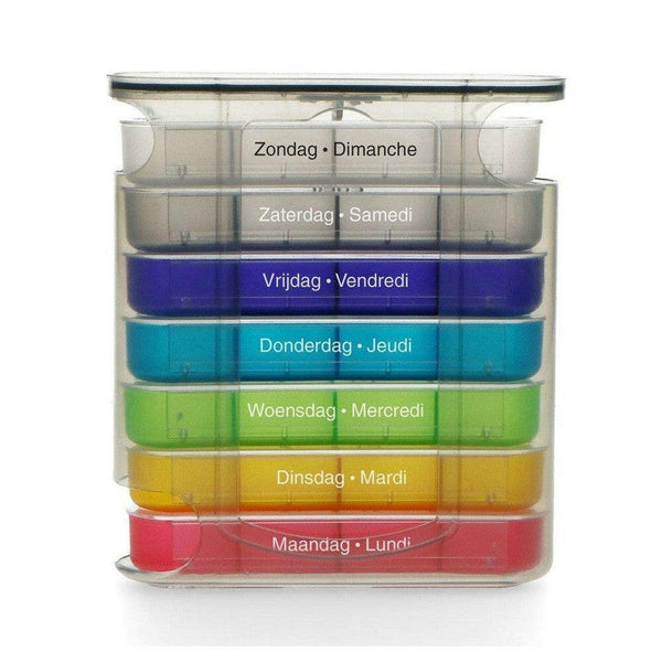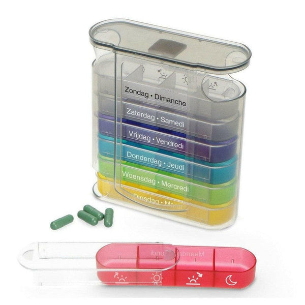 Bewaar je medicijnen overzichtelijk in de Fysic FC-53 luxe pillendoos. Zo voorkom je dat je ze vergeet in te nemen. Dit pillendoosje heeft een handige indeling in 7 aparte gekleurde vakjes, waarin je medicijnen voor iedere dag van de week kunt bewaren. Daarnaast heeft elk vakje een indeling in 4 dagdelen. De uitneembare vakjes zijn ook los mee te nemen. Ideaal als je onderweg medicijnen moet innemen!