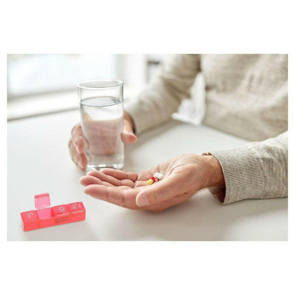 Het pillendoosje is geschikt om je medicijnen voor de hele week in de bewaren. Door de overzichtelijke indeling kun je in één oogopslag zien hoeveel pillen er nog in zitten. Zo weet je ook meteen of het nodig is om een herhaalrecept aan te vragen of nieuwe medicijnen op te halen bij de apotheek. De pillendoos kan tussentijds gewoon gewassen worden in de vaatwasser (zonder het etui).