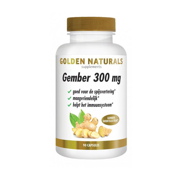Gember is al eeuwenlang bekend om zijn heilzame eigenschappen. Bij Golden Naturals hebben ze deze krachtige wortel verwerkt in een hoogwaardige formule van 300 mg per capsule. Golden naturals heeft een gestandaardiseerd extract gebruikt met 5% gingerolen - de werkzame stoffen die gember zo bijzonder maken.