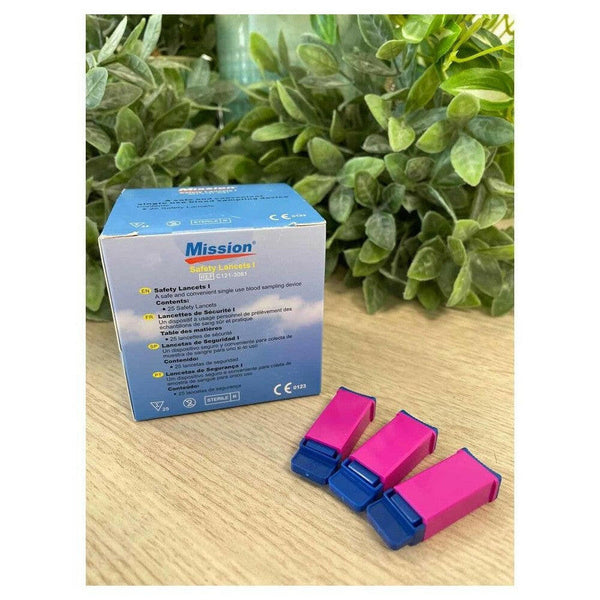 Deze lancetten voor de Mission 3-in-1 cholesterolmeter hebben een dikte van 21G en zijn verpakt per 25 stuks. De steriele en omhulde veiligheidslancetten zijn zo ontworpen dat onbedoeld letsel en besmetting voorkomen worden, waardoor prikken vrijwel pijnloos en hygiënisch is. Het naaldje wordt automatisch ingetrokken voor extra veiligheid.