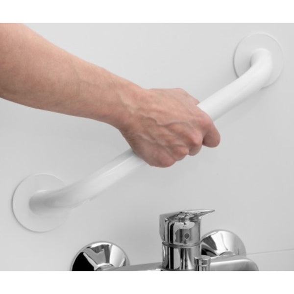 De flexibiliteit in montage maakt deze wandbeugel geschikt voor elke badkamersituatie. Plaats hem horizontaal langs de douchewand voor ondersteuning tijdens het douchen, of monteer hem verticaal naast het toilet voor extra houvast bij het opstaan en gaan zitten.