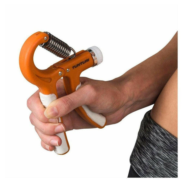 De grepen van de Tunturi instelbare knijphalter voelen comfortabel aan en zijn voorzien van een witte antislip-zone die glijden in de hand helpen voorkomen. Met de draaiknop kun je het weerstandsniveau makkelijk instellen op een lichte weerstand van 5 tot 20 kg. Wij raden aan om te beginnen met de lichtste weersstand en langzaam op te bouwen tot een wat zwaardere weerstand.