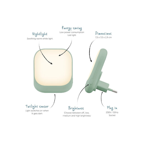 Door het gebruik van LED-technologie is dit nachtlampje uiterst veilig. De LED-lamp blijft altijd koel, waardoor er geen gevaar op brand is. Bovendien kun je met drie verschillende lichtsterktes het lampje precies aanpassen aan wat je kindje nodig heeft.