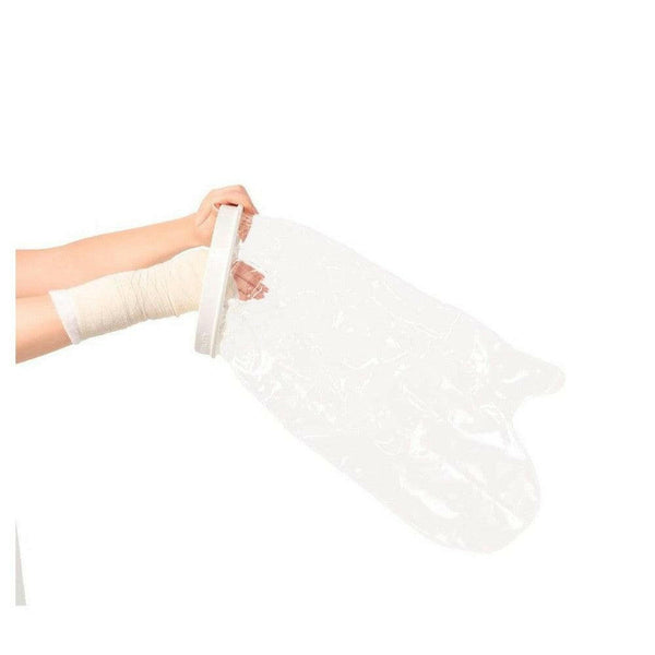 Deze douchehoes bestaat uit een stevige kunststof zak met elastische sluiting. Dankzij de elastische sluiting kun je de douchehoes makkelijk zelf aan doen en bij het dragen knelt de hoes de arm niet af.