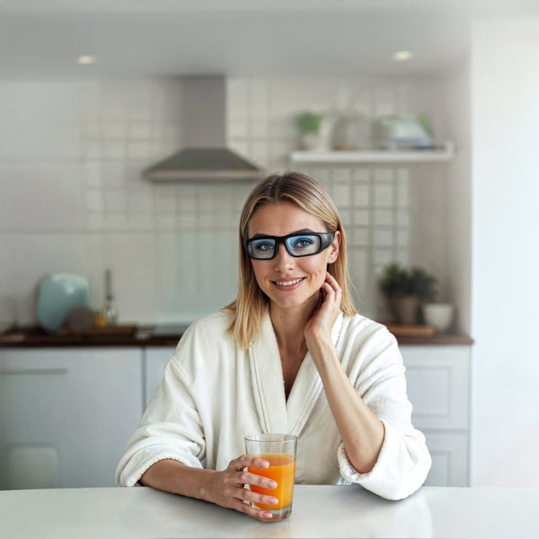 De PROPEAQ 3 lichtbril is ontworpen voor dagelijks gebruik. Met een gewicht van slechts 41 gram draag je hem comfortabel tijdens je ochtendrutine. Of je nu je ontbijt bereidt, de krant leest of aan het werk bent, de bril zit prettig en valt nauwelijks op.