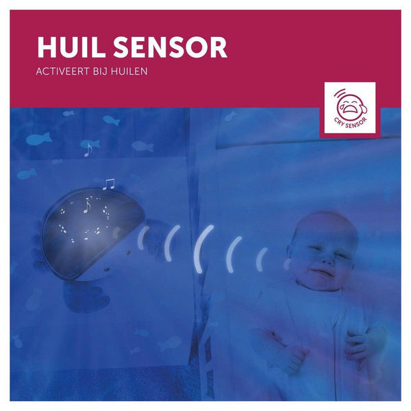 Het geluid van de Cody Krab Ocean Projector gaat uit en je kindje valt in slaap binnen 20 tot 30 minuten. De projectie stopt vanzelf na een half uur. Als jouw kindje begint te huilen heeft Cody de Krab een speciale huilsensor waardoor hij automatisch aan gaat.